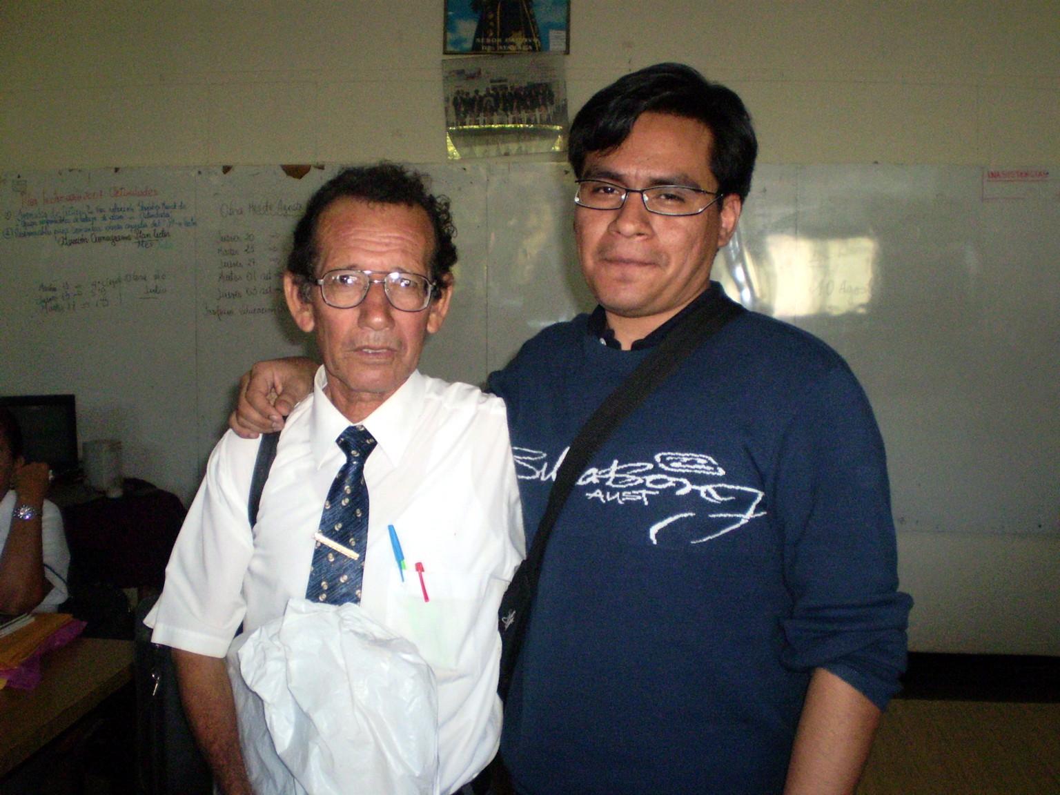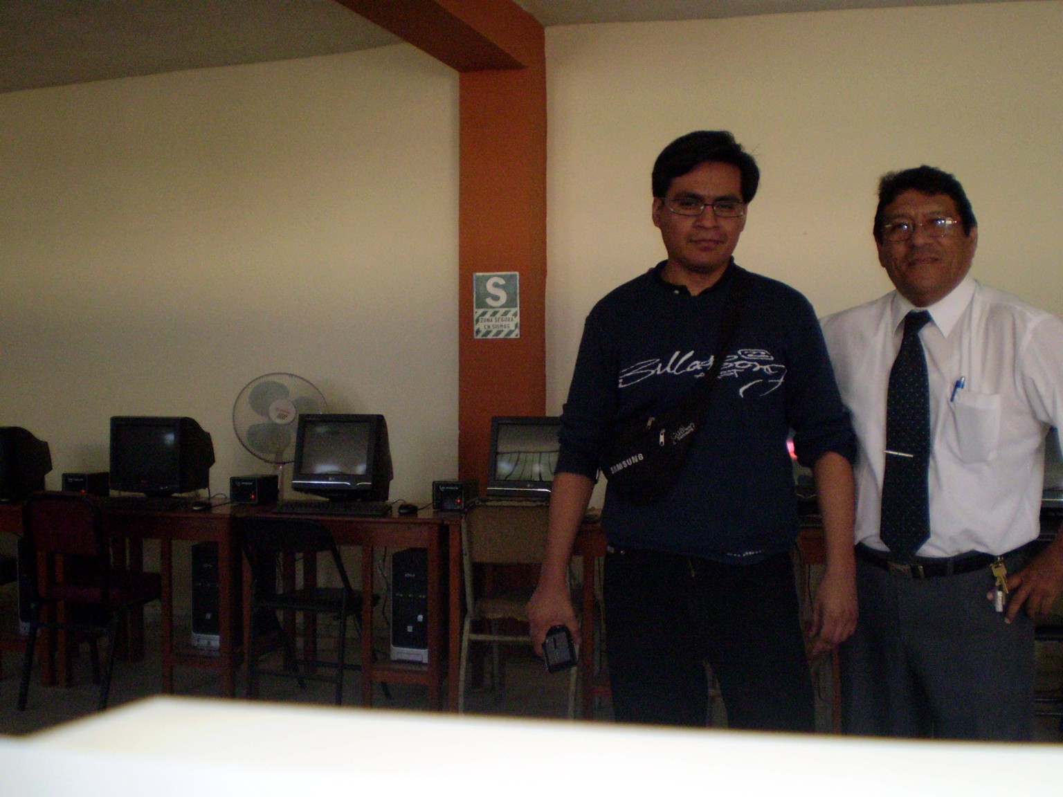 Lunes 10 de agosto. Hemos tenido la visita de nuestro exalumno, el Ingeniero Electrónico Dante Yovera, promoción 1998. Estuvo recorriendo las instalaciones de su alma mater, recordando antiguos pasajes de su vida estudiantil con los profesores y visitando su antiguo salón de clases, hoy convertido en un moderno laboratorio de cómputo.