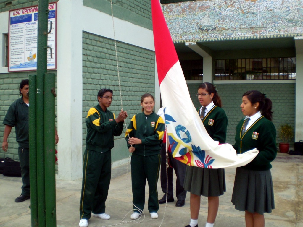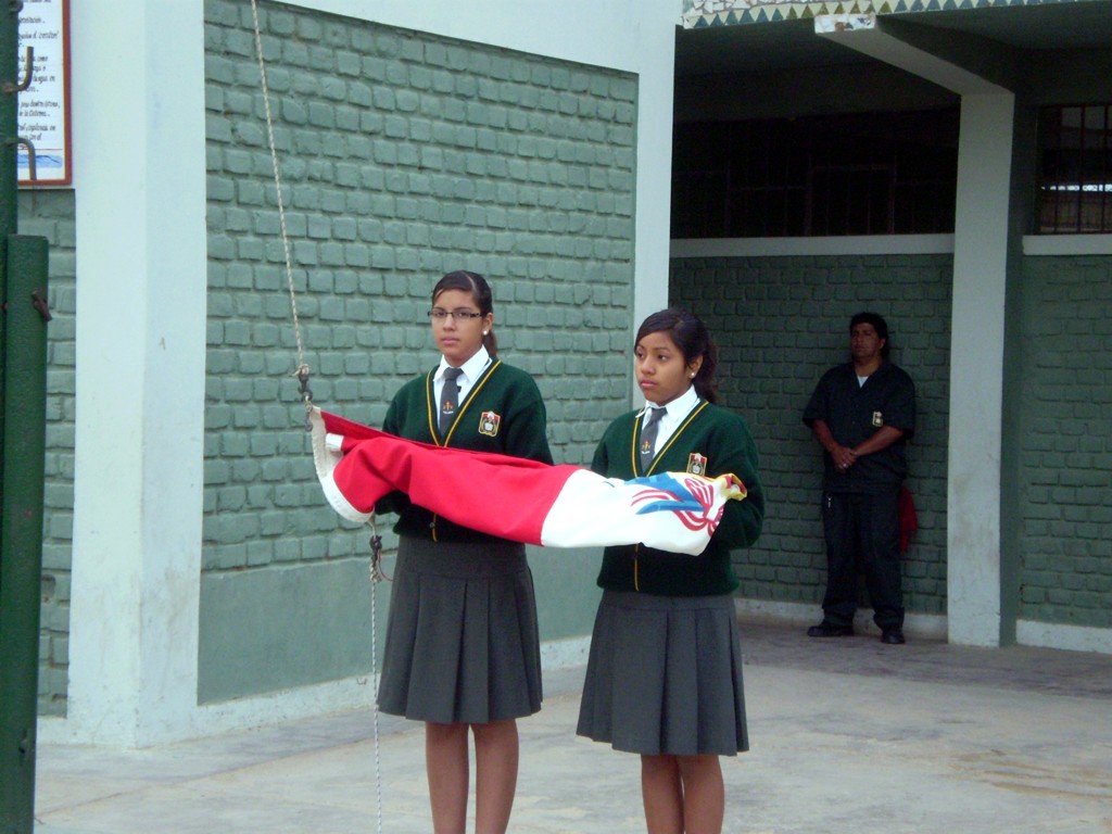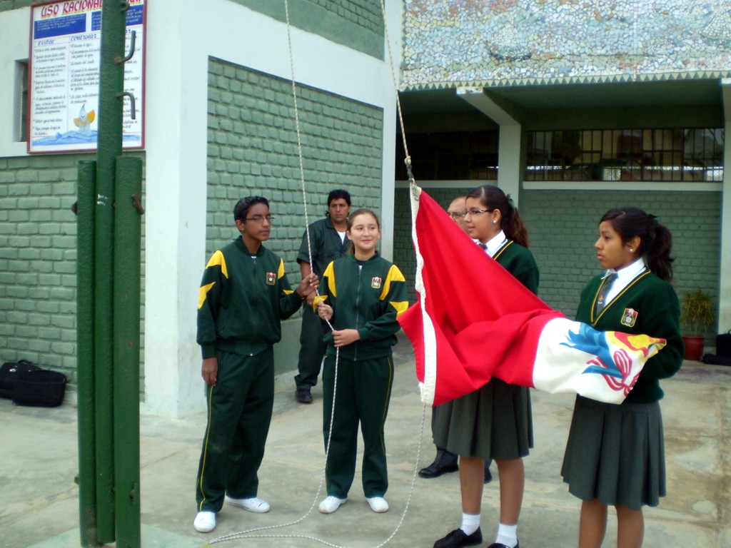 Lunes 31 de agosto. El izamiento del pabellón estuvo a cargo de los alumnos Sergio Rojas Lizama y Cirladangella Panta Martínez por su destacada participación en el concurso de Teatro en los Juegos Florales Nacionales, habiendo obtenido el Primer Puesto, y ser designados como representantes de Talara en estos Juegos Florales. Felicidades a es alumnos destacados y todo el Taller de Teatro.