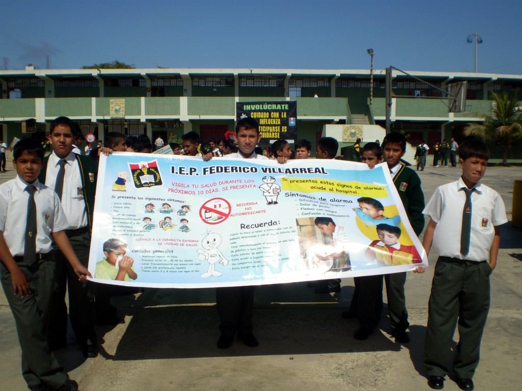 En el marco de nuestro mes de aniversario, y cumpliendo con la programación de actividades, nuestra IE Federico Villarreal realizó la Marcha de Sensibilización para prevenir el contagio de la gripe AH1N1, por las principales avenidas de nuestra ciudad.