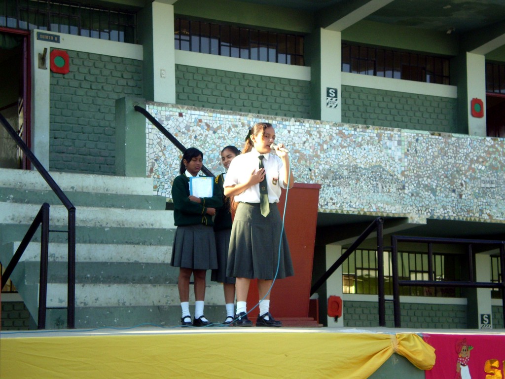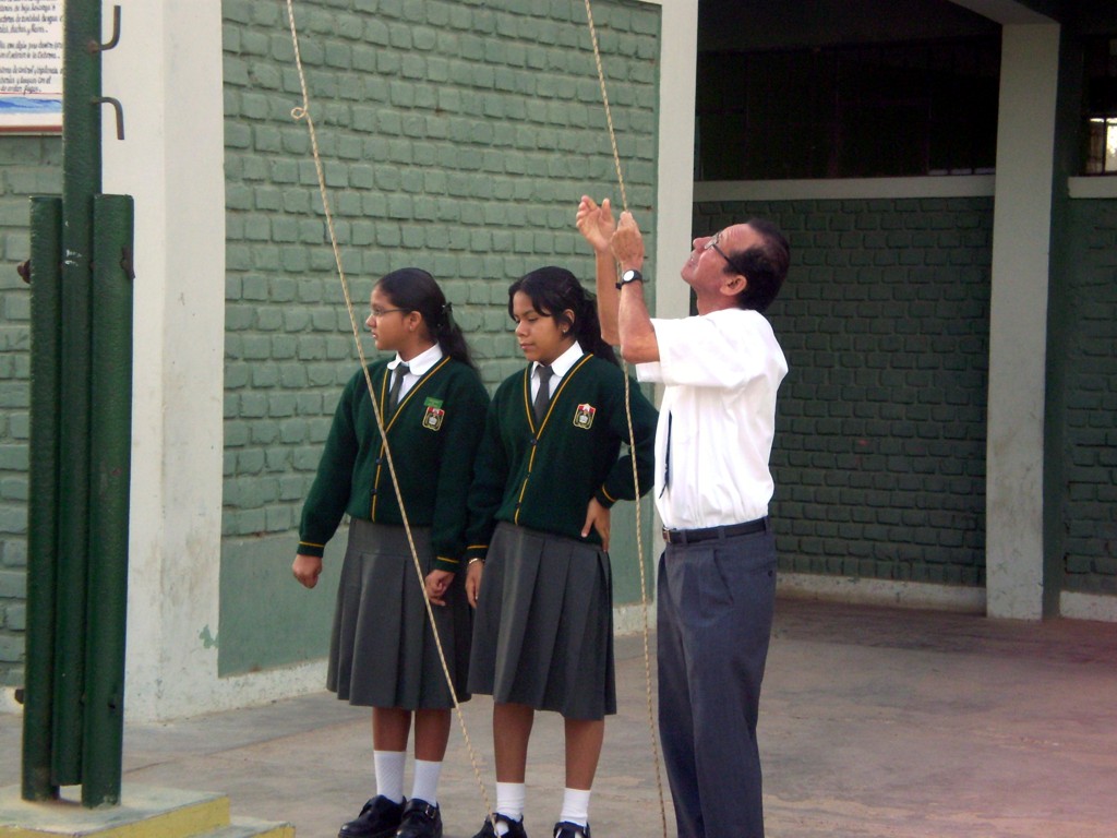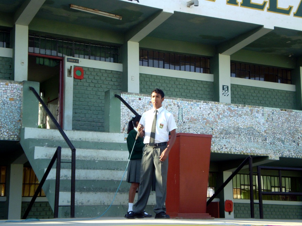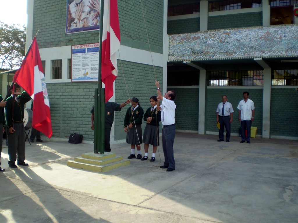 Lunes 26 de octubre.- Se inció la semana con el tradicional Izamiento del Pabellón Nacional a cargo del profesor Raymundo Céspedes, quien hizo una exhortación a todos los alumnos a seguir investigando y perseverando en sus estudios.