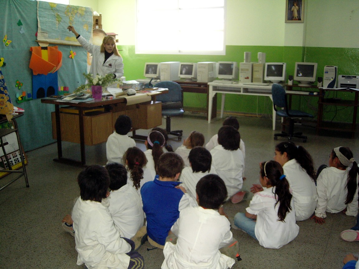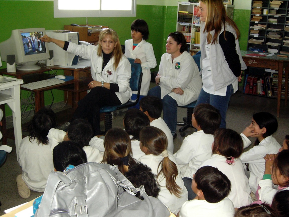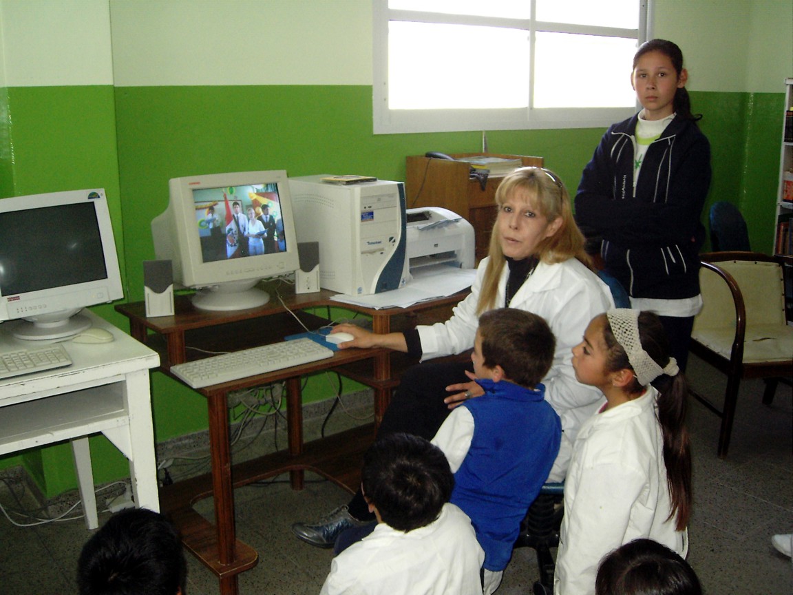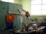 Nuestra amiga docente de Argentina, Alejandra Oviedo nos envia estas fotos donde se le ve enseñando a sus pequeños alumnos las actividades de nuestro colegio, como el concurso de ambientación y el pasacalle.