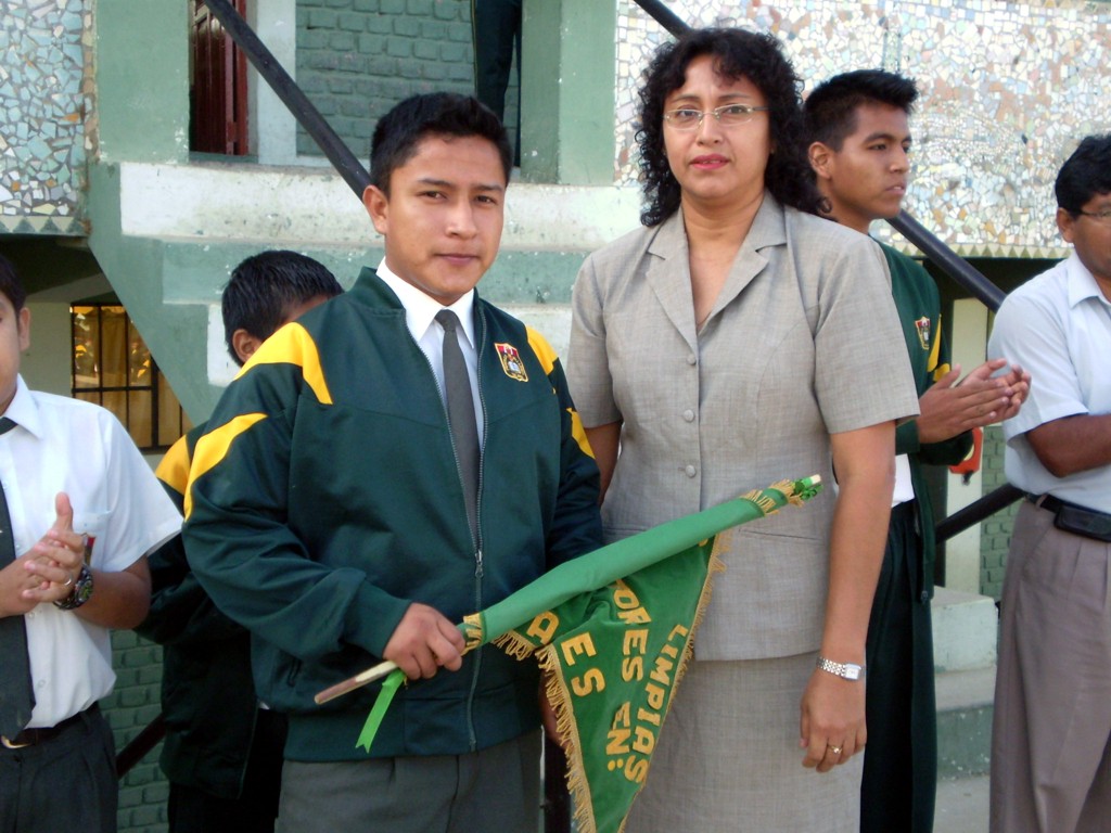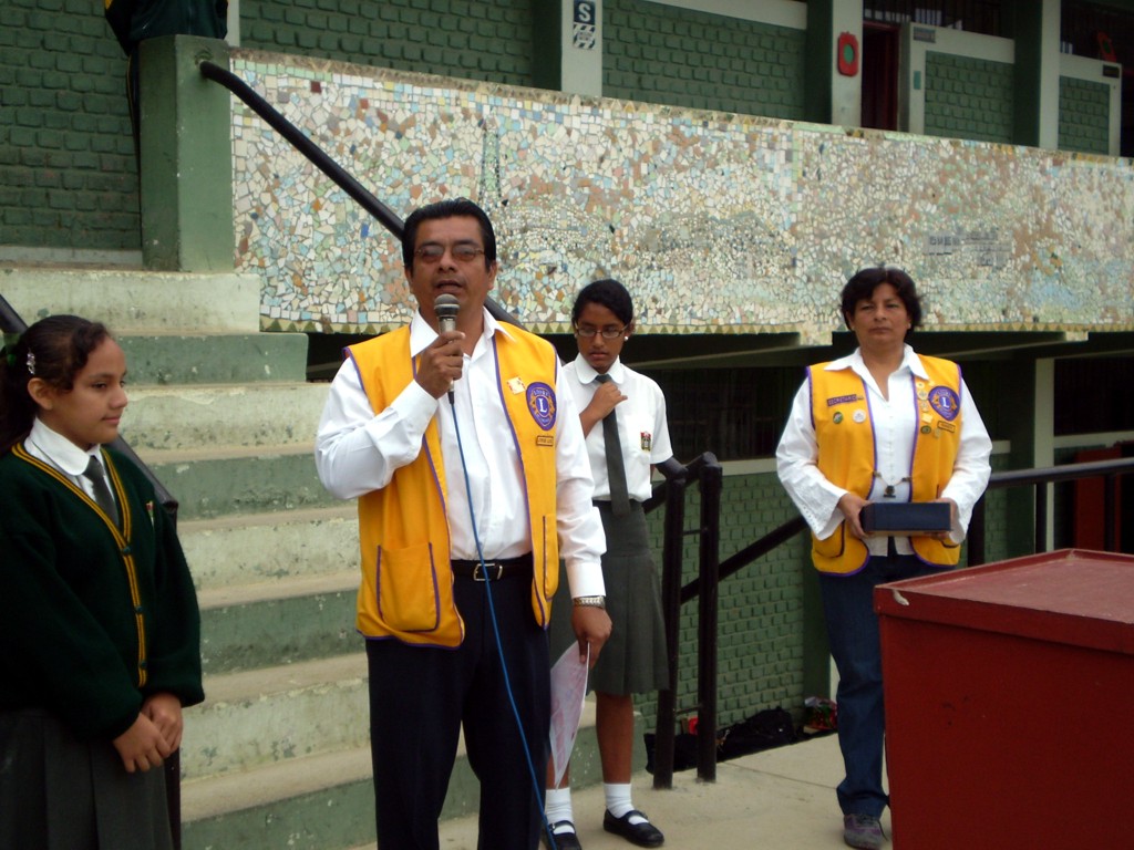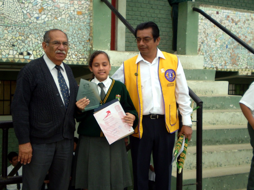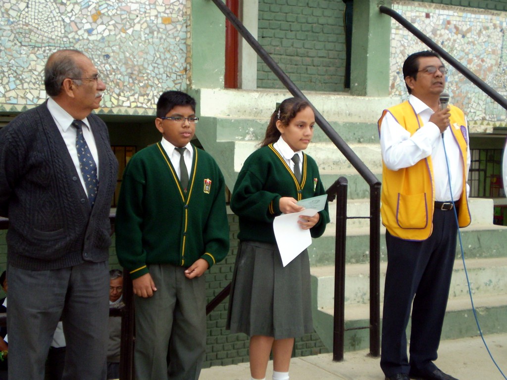 Lunes 23 de Noviembre.- Recibimos la grata visita de los representantes del Club de Leones Santa Rosa de Talara, el Sr. Jorge Chunga y la Sra. Nancy Chunga. Quienes entregaron el premio al Primer Puesto obtenido por nuestra alumna Shessira Cruz Matute, en el concurso internacional de Dibujo Por La Paz, organizado por el Club de Leones.