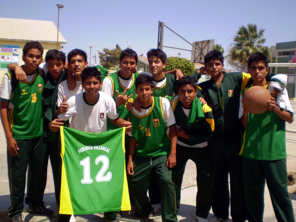 Federico Villarreal gana en basket sub 17 a la IE Coronel Zegarra de el Alto 65 a 15. Los nuevos Campeones Provinciales esperan la etapa Subregional. Arriba Villarreal.