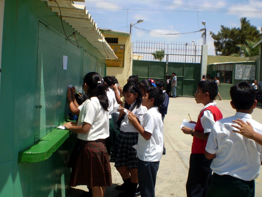Los resultados del examen de selección para Primer Grado 2010 se dieron a partir de las 5 pm. con la presencia de numerosos padres de familia y alumnos postulantes.