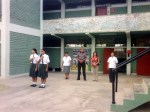 Ceremonia de Izamiento del Pabellón Nacional con la participaciónde los padres de familia presidentes de aula de Primer Grado.