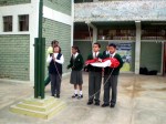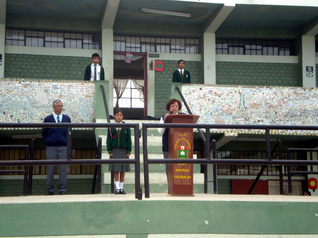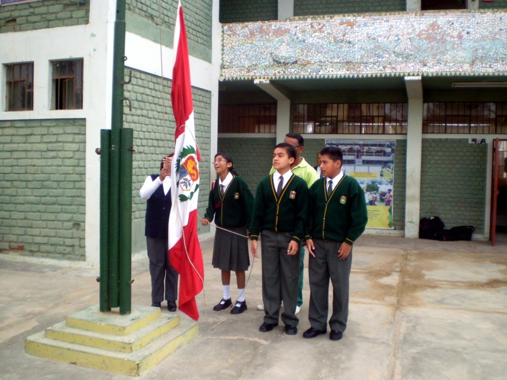 Lunes 6 de setiembre. La ceremonia de izamiento del Pabellón Nacional estuvo acargo de la Sra. haydee Antón, trabajadora de nuestro colegio, y de la alumna promocional Cris Sifuentes, en mérito por haber obtenido el Primer Lugar en la calificación del Segundo Bimestre.