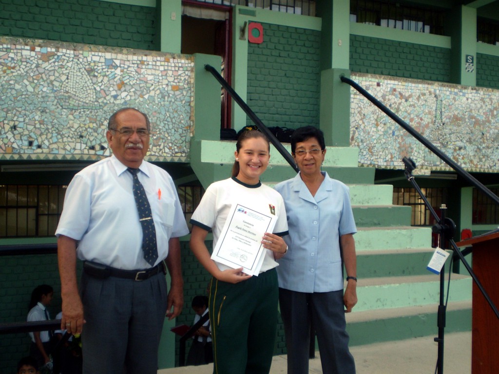 El Gobierno Regional y la Comisiónn Organizadora, premiaron a nuestra alumna Cirladangela Panta Martínez por su destacada participación en los diferentes eventos culturales organizados durante el año 2010 y lo que va del presente. Felicitaciones Cirla