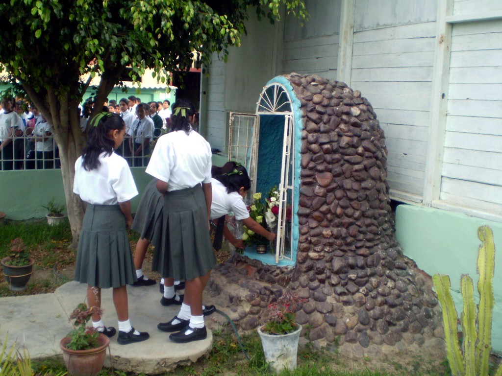 Asimismo, un grupo de alumnas del Segundo Grado B, tuvo a cargo la Charla Central por esta importante fecha, culminando con la entraga de arreglos florales para la Gruta de nuestra patrona, Virgen de la Asunción.