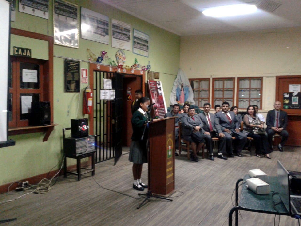 Luego, tuvieron su participación, los alumnos Tatiana Diez de segundo grado y Carlos Juarez de quinto, quienes destacaron las bondades de nuestra institución, además de indicarles a los padres de familia «el por qué estudiar en el Federico Villarreal».