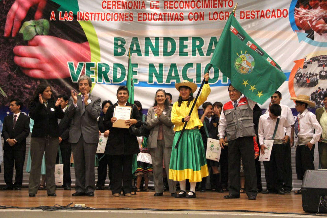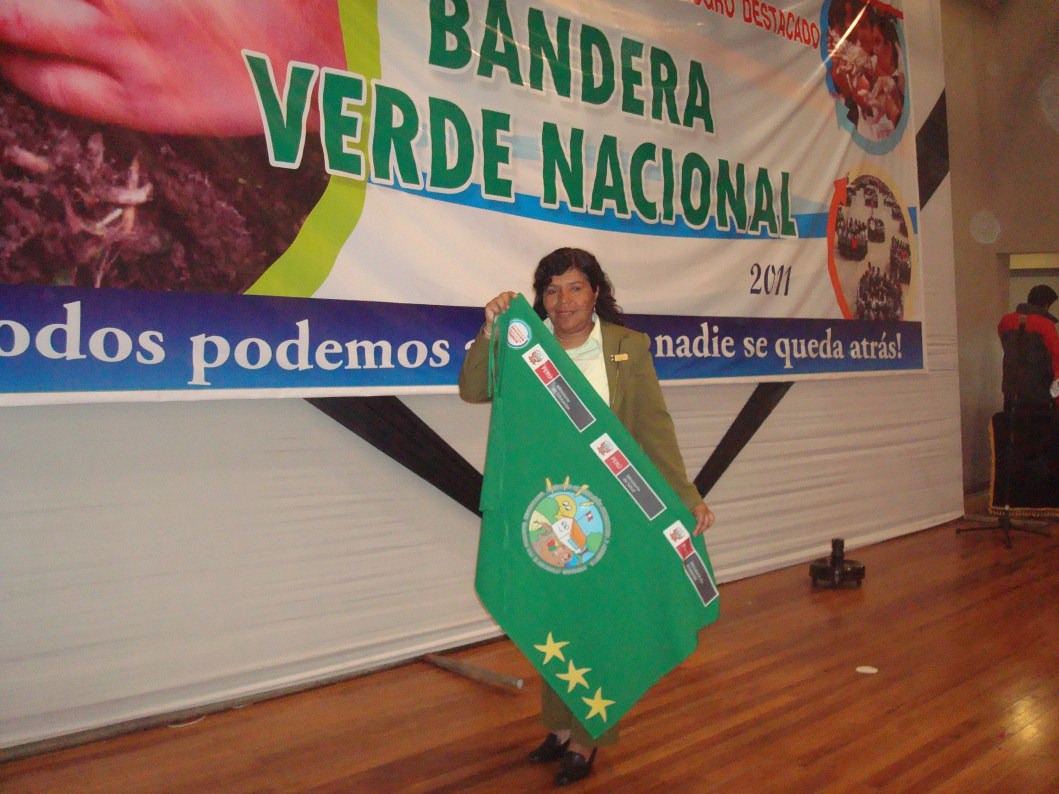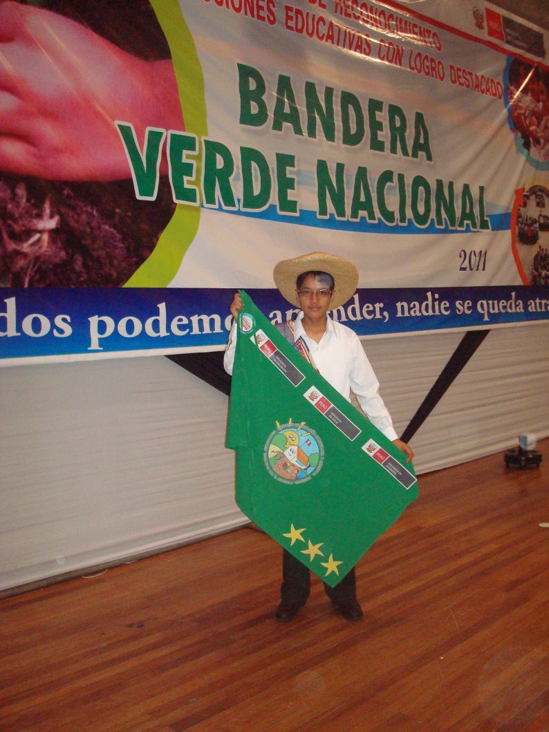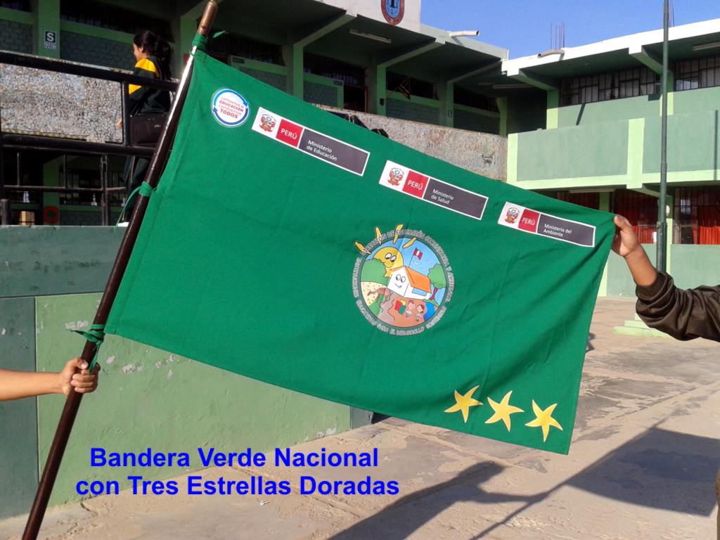 Qué significa: La Bandera Verde es un reconocimiento al esfuerzo, de las instituciones educativas que han alcanzado los mayores logros destacados a nivel nacional, en aplicación del enfoque ambiental durante el año 2011, que es entregada por tres Ministerios: el Ministerio de Educación, el Ministerio del Ambiente y el Ministerio del Ambiente, ”porque los tres Ministerios y el Gobierno Peruano piensan que la Educación Ambiental es fundamental en la formación de los alumnos, porque sólo con la educación ambiental vamos a poder lograr un país mejor”.