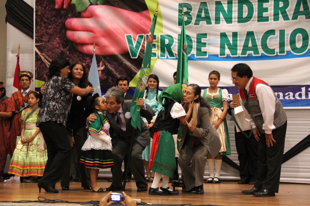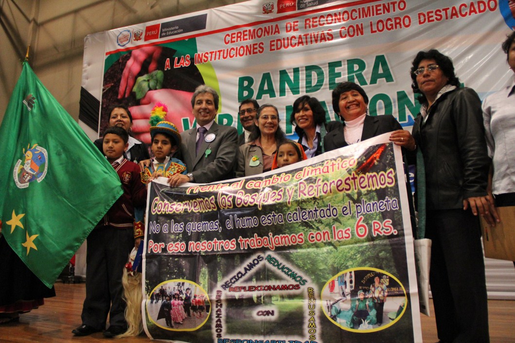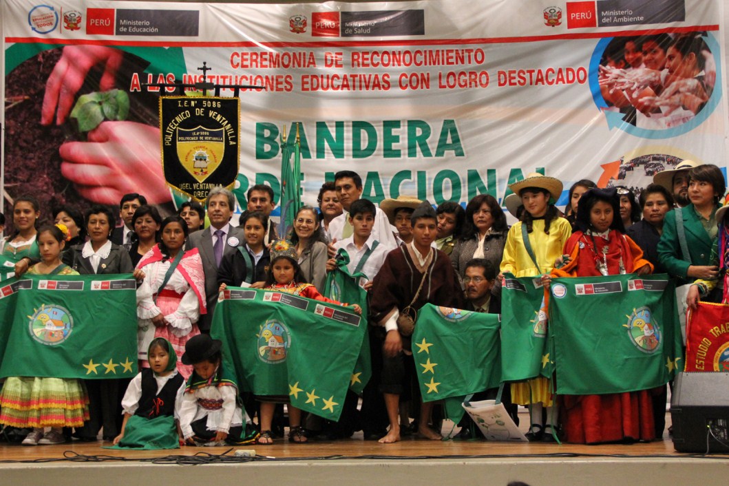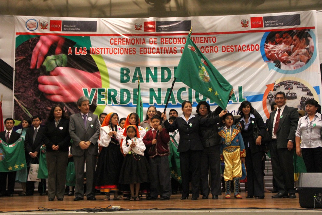 Qué significa: La Bandera Verde es un reconocimiento al esfuerzo, de las instituciones educativas que han alcanzado los mayores logros destacados a nivel nacional, en aplicación del enfoque ambiental durante el año 2011, que es entregada por tres Ministerios: el Ministerio de Educación, el Ministerio del Ambiente y el Ministerio del Ambiente, ”porque los tres Ministerios y el Gobierno Peruano piensan que la Educación Ambiental es fundamental en la formación de los alumnos, porque sólo con la educación ambiental vamos a poder lograr un país mejor”.