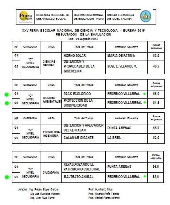 Por decisión de los miembros del Jurado y en Acta firmada en las oficinas de UGEL Talara, se acordó reconocer como ganadores a las dos Instituciones Educativas, y por decisión del jurado calificador, otorgar la representación de Talara en la próxima fase del concurso a la IE Punta Arenas, empatada en el primer lugar con nuestro colegio.