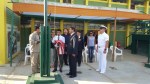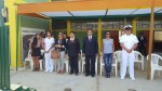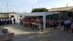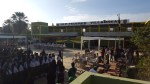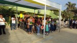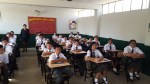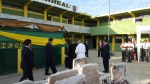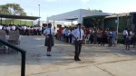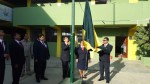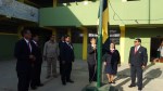 Izamiento del Pabellón del colegio a cargo de la Subdirectora profesor a Irma Ipanaqué y los profesores Juan Gutiérrez y Rafael Castro, Jefes de las áreas de Matemática y Comunicación respectivamente.
