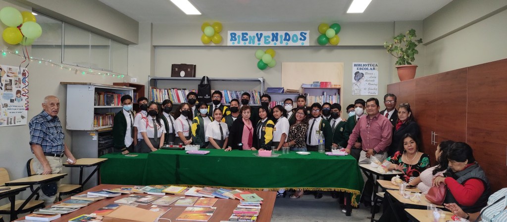 A partir de la iniciativa del profesor Juan Gutiérrez y sus estudiantes, se ha ido gestando la tan ansiada Biblioteca par nuestro querido colegio. Y hoy se pudo realizar la inauguración con la presencia de los padrinos Edgard Paredes e Ingrid Chinga y sobre todo, contamos con la grata visita de la profesora Blanca Lucía Andrade Ramírez de Sánchez Dávila, quien laboró por 26 años en la institución educativa, destacando por la organización durante 20 años, de los famosos Festivales de Danzas del Federico Villarreal. Asimismo, nos visitaron un grupo de ex madres de familia, muy identificadas con el colegio, que formaron parte de la institución educativa durante la década del 90 y 2000 y presentaron muy buenas ideas para la reactivación del Taller de Danzas en nuestro colegio.