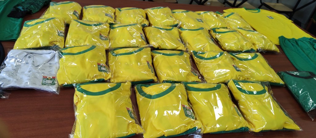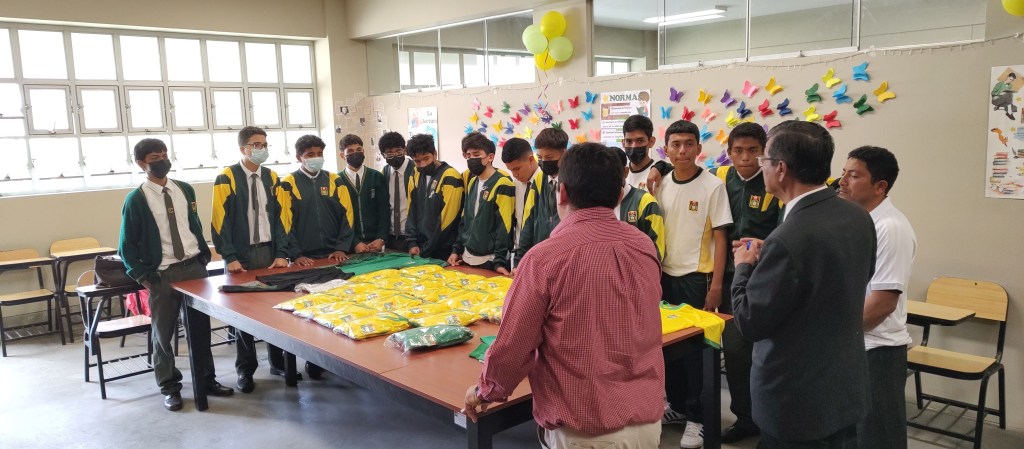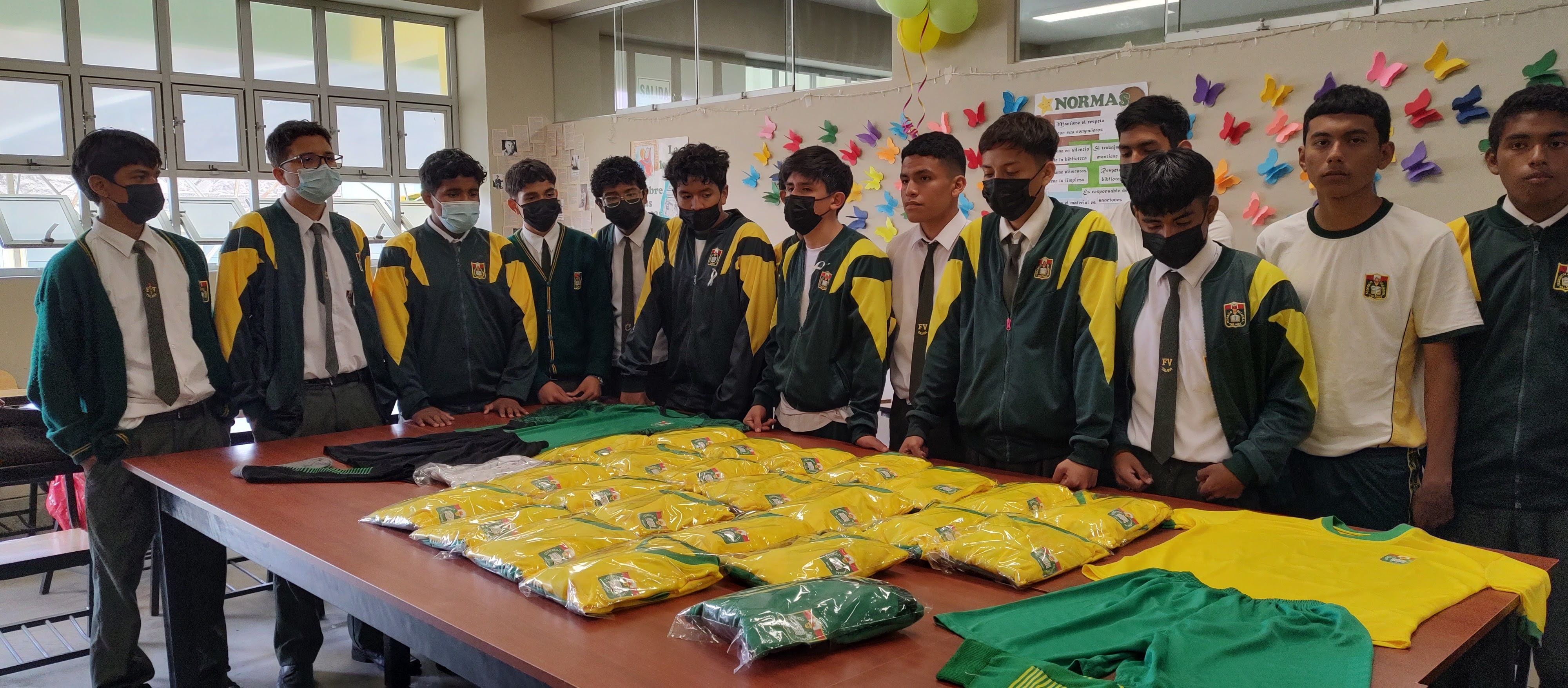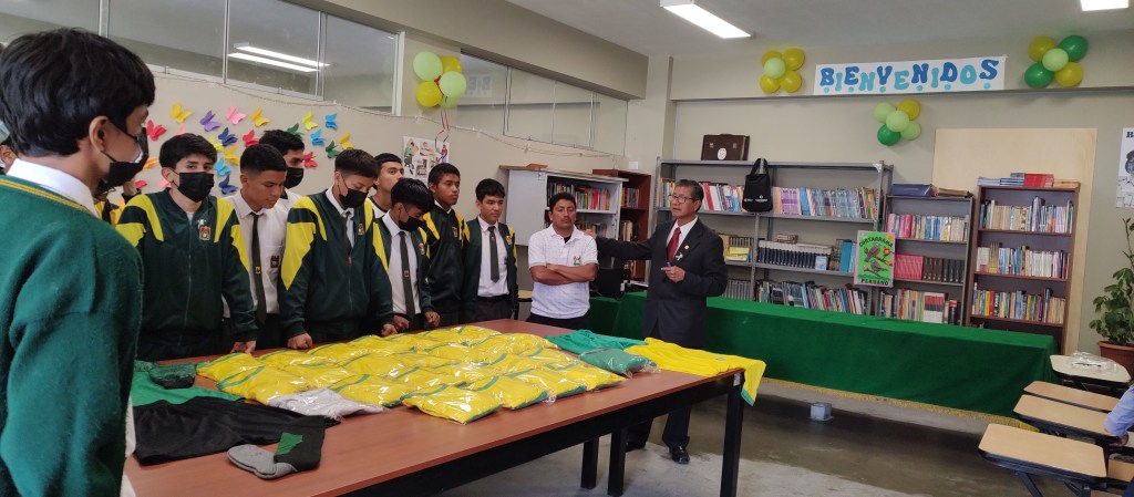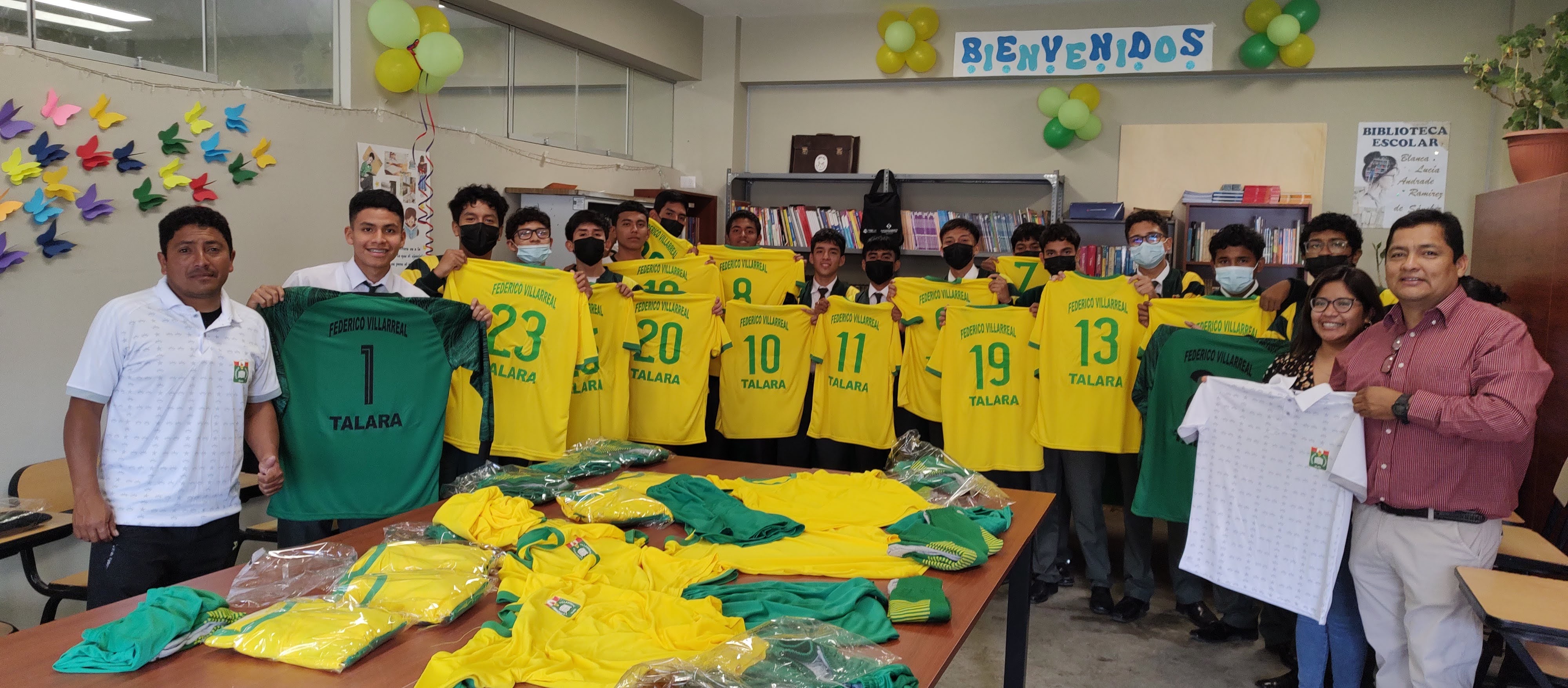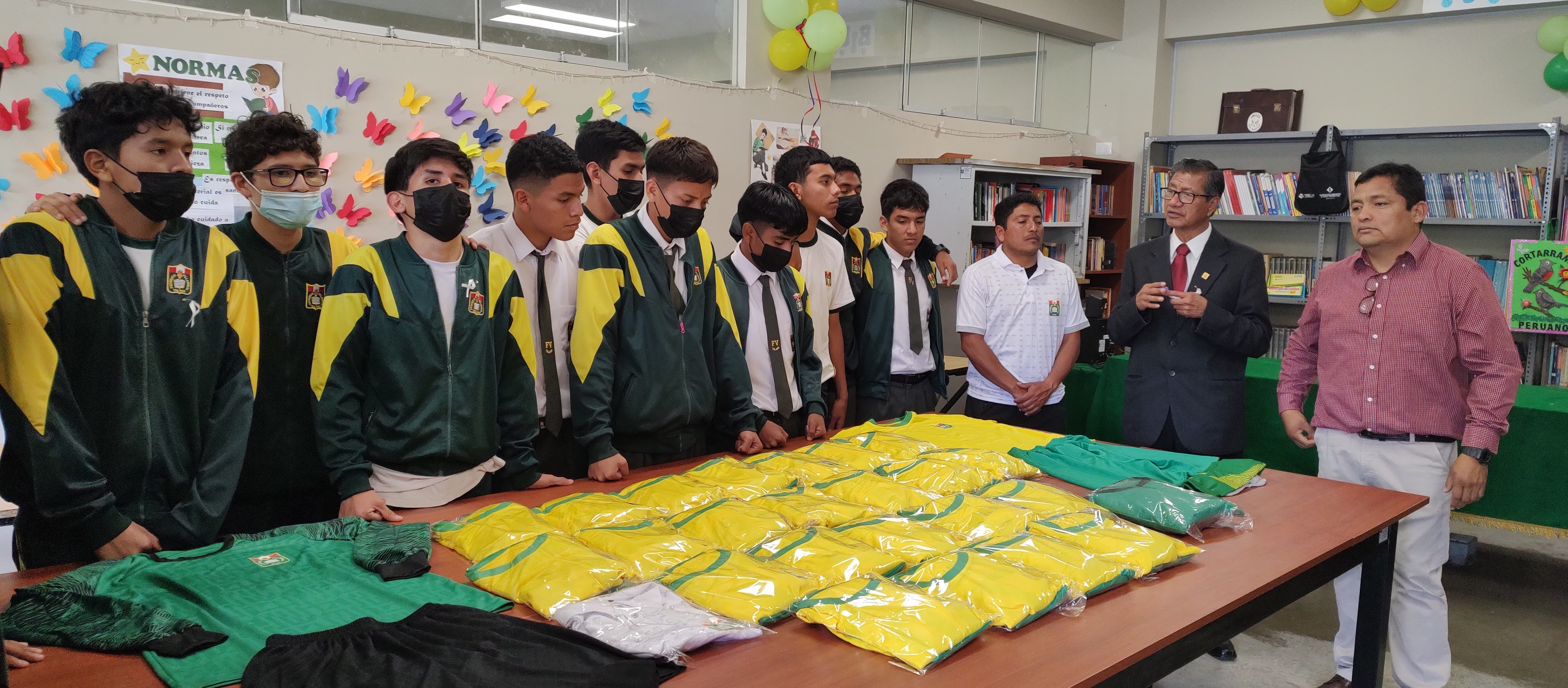 La selección de futbol y futsal recibieron hoy, de parte del presidente de APAFA, Edgard Paredes, las nuevas camisetas e indumentaria deportiva que será utilizada en todas las competencias que participe nuestro colegio. Es un esfuerzo más por brindar todo lo necesario a los estudiantes para que puedan cumplir con los objetivos trazados. Felicitaciones estudiantes y a poner todo el esfuerzo en las futuras competencias.