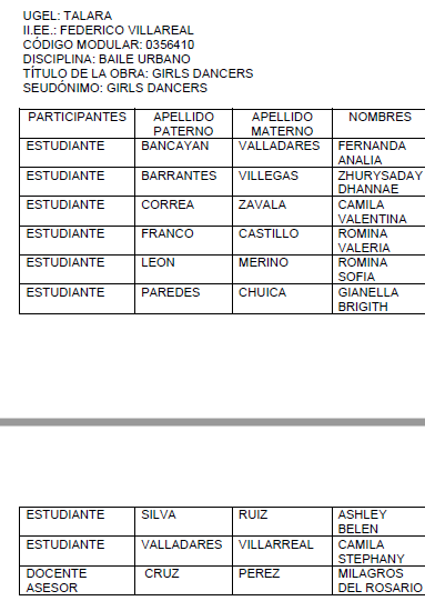 Nuestra institución educativa, nuevamente demostrando la preparación y calidad en la participación de sus estudiantes, fue declarada Ganadora en la disciplina: BAILE URBANO, en el marco de los Juegos Florales Escolares Nacionales 2022, con la presentación: «Girls -Dancers» a nivel Regional, lo que significa que pasan a la Etapa Nacional.
