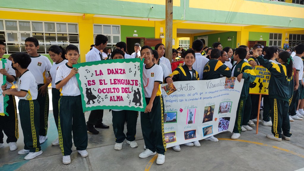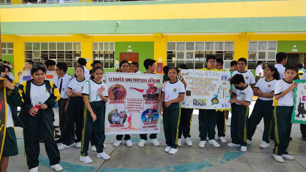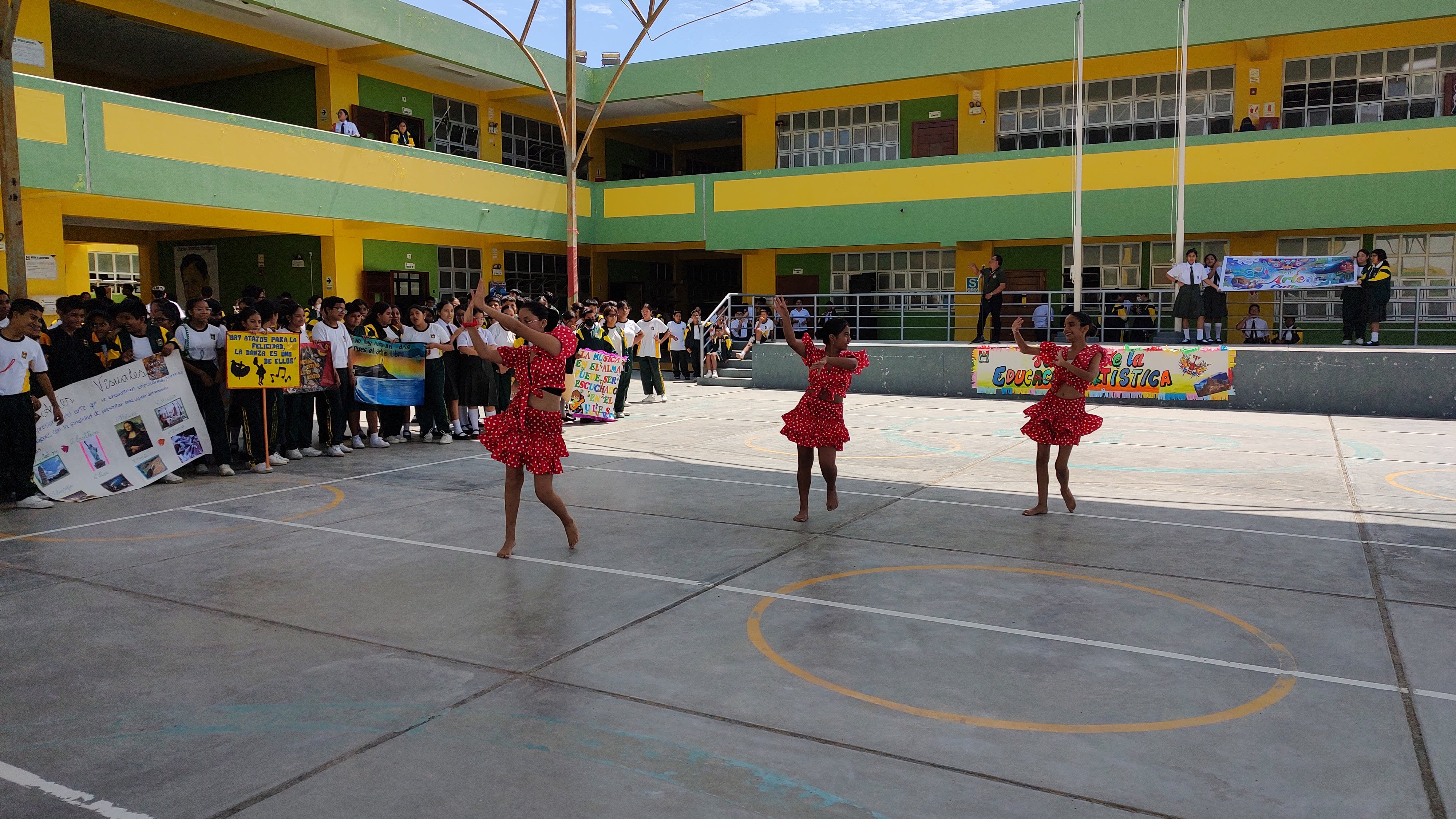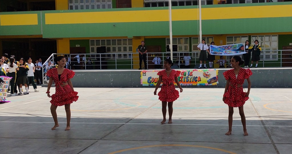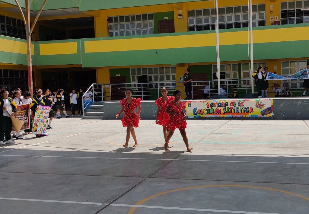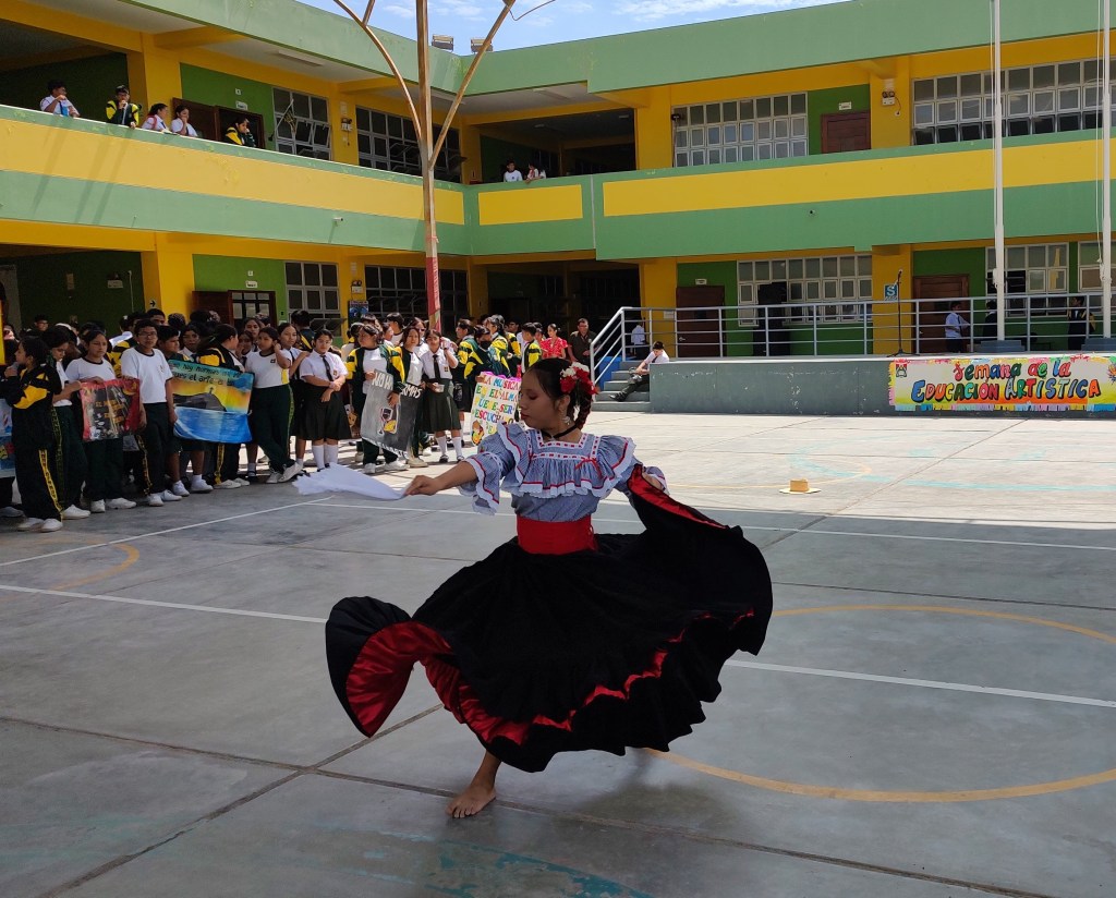 Por segundo día consecutivo, nuestros estudiantes mostraron su talento y entusiasmo en la presentación por la Semana de la Educación Artística, con una bonita Marinera y un hermoso Festejo. Felicitaciones estudiantes y gracias por participar activamente de estas actividades. Arte y Cultura: Profesor Elios Cherres y Carlos Mauricio.
