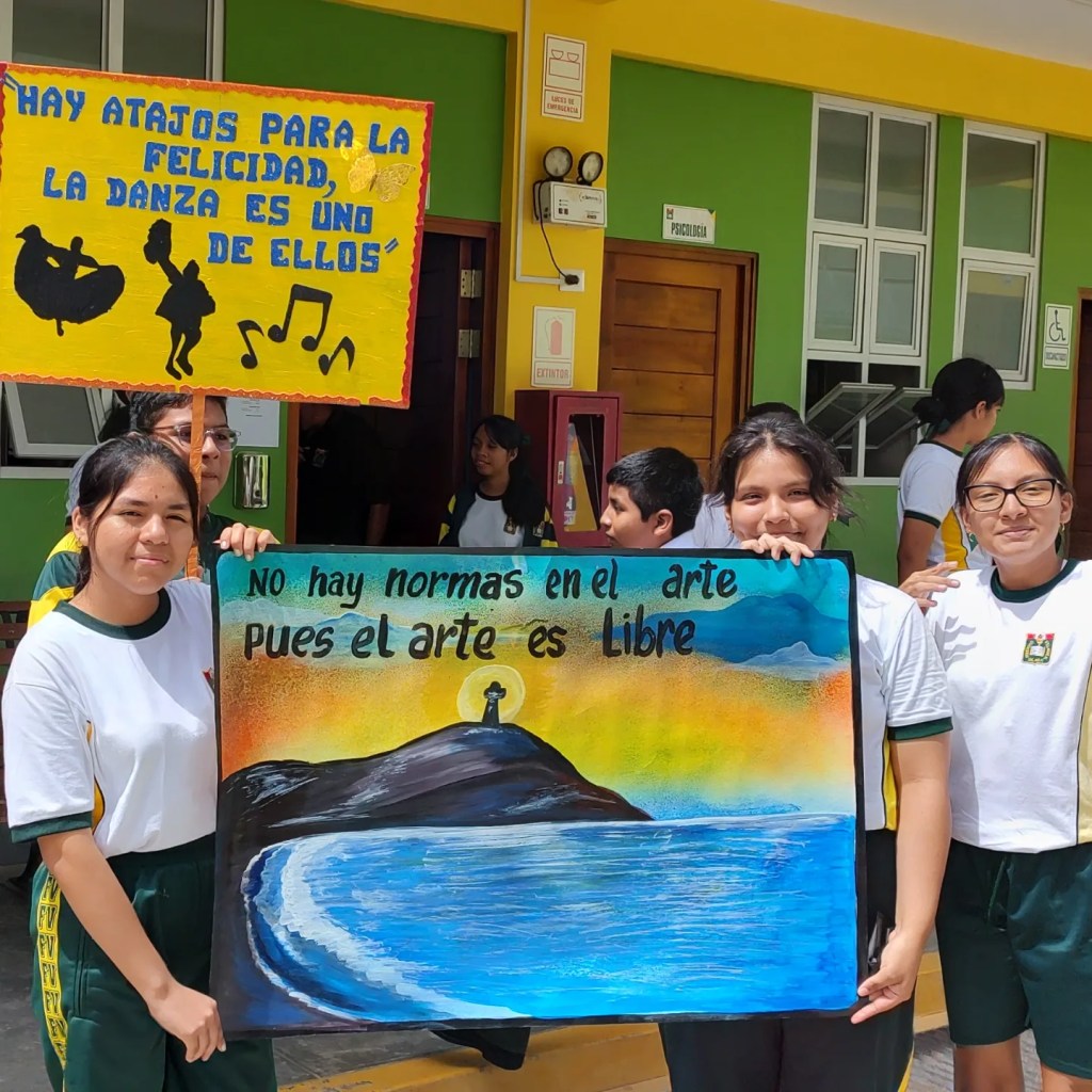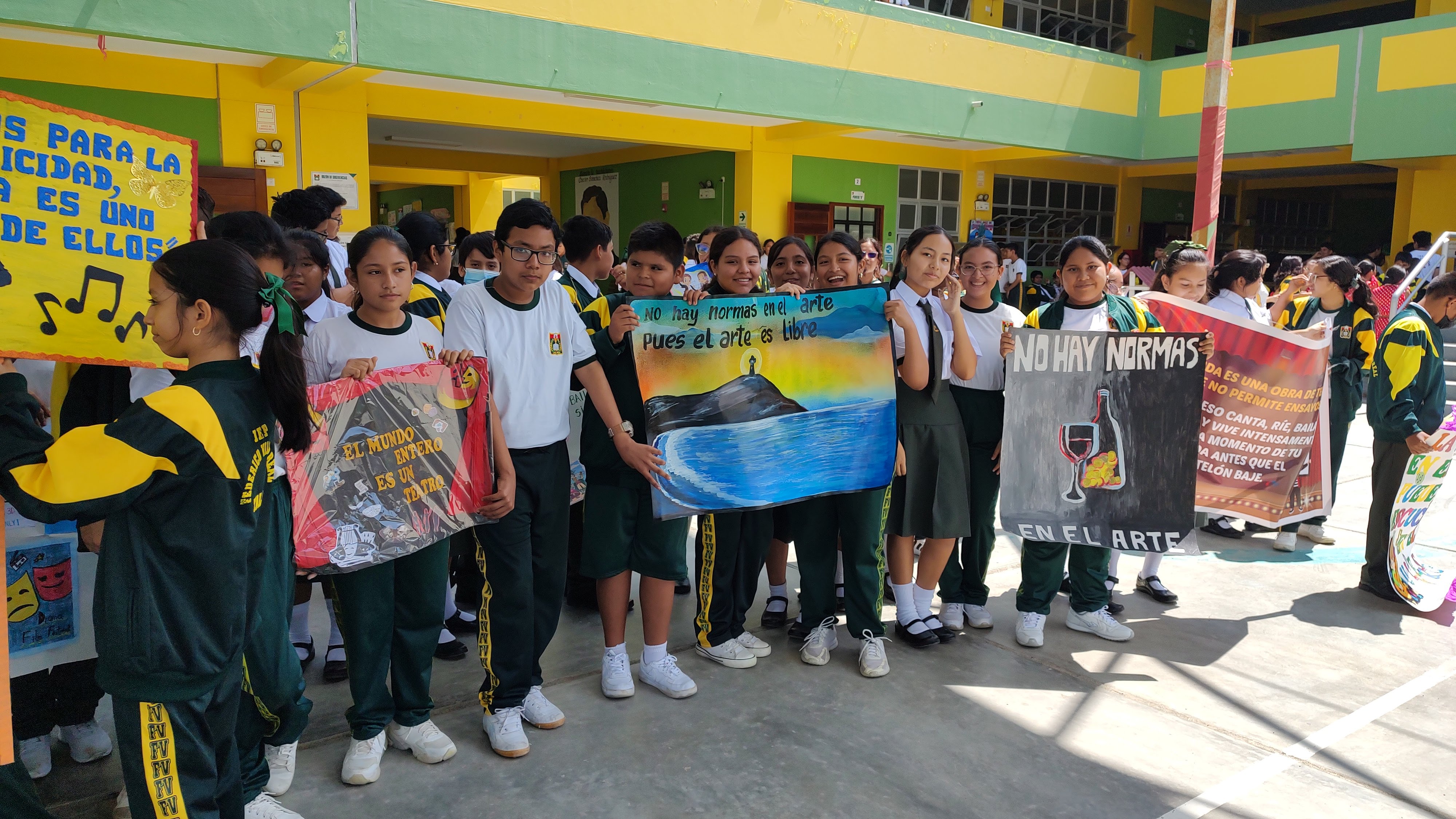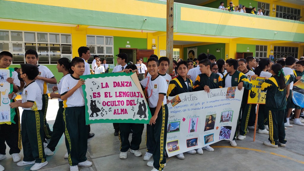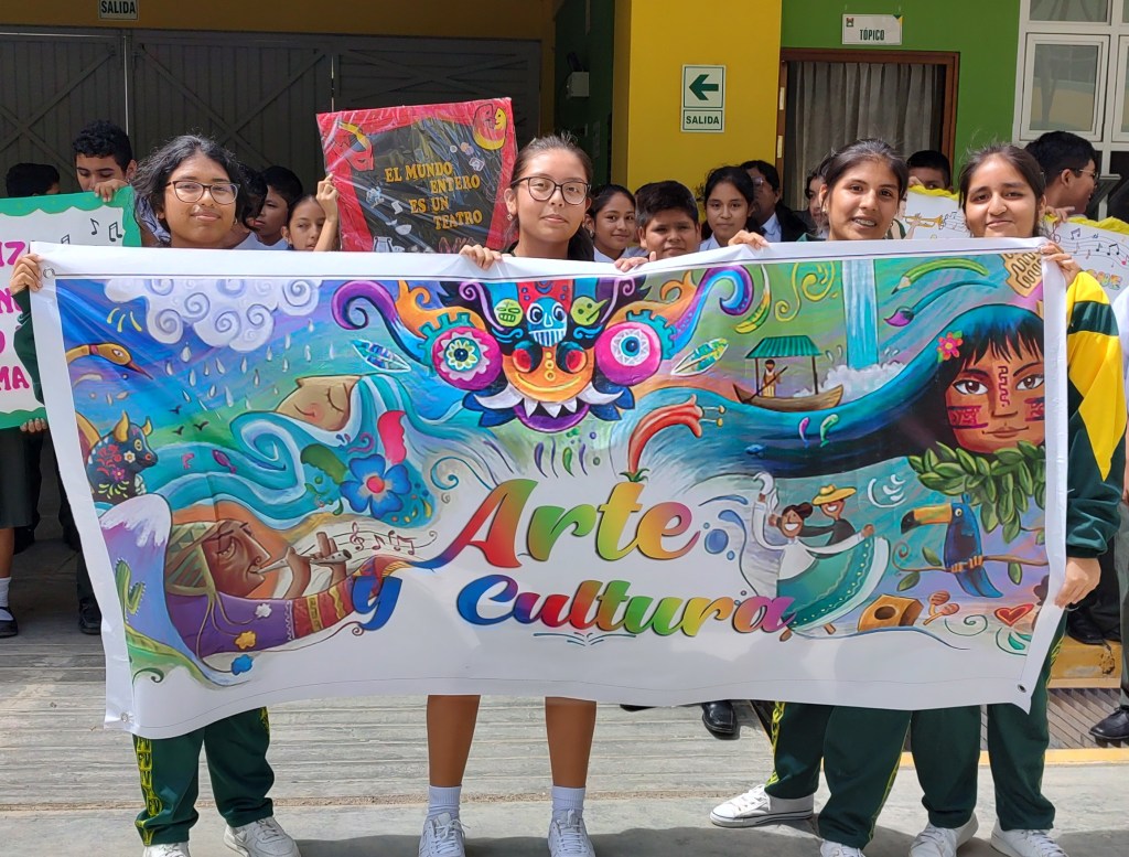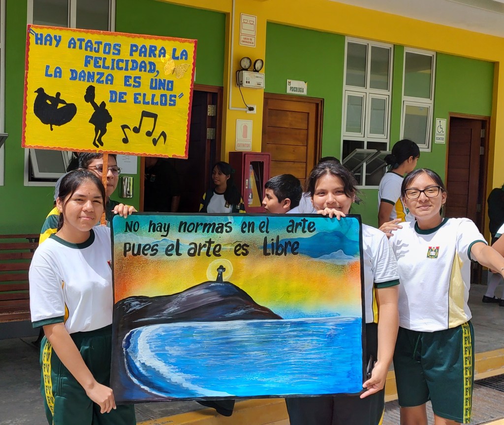 Por segundo día consecutivo, nuestros estudiantes mostraron su talento y entusiasmo en la presentación por la Semana de la Educación Artística, con una bonita Marinera y un hermoso Festejo. Felicitaciones estudiantes y gracias por participar activamente de estas actividades. Arte y Cultura: Profesor Elios Cherres y Carlos Mauricio.