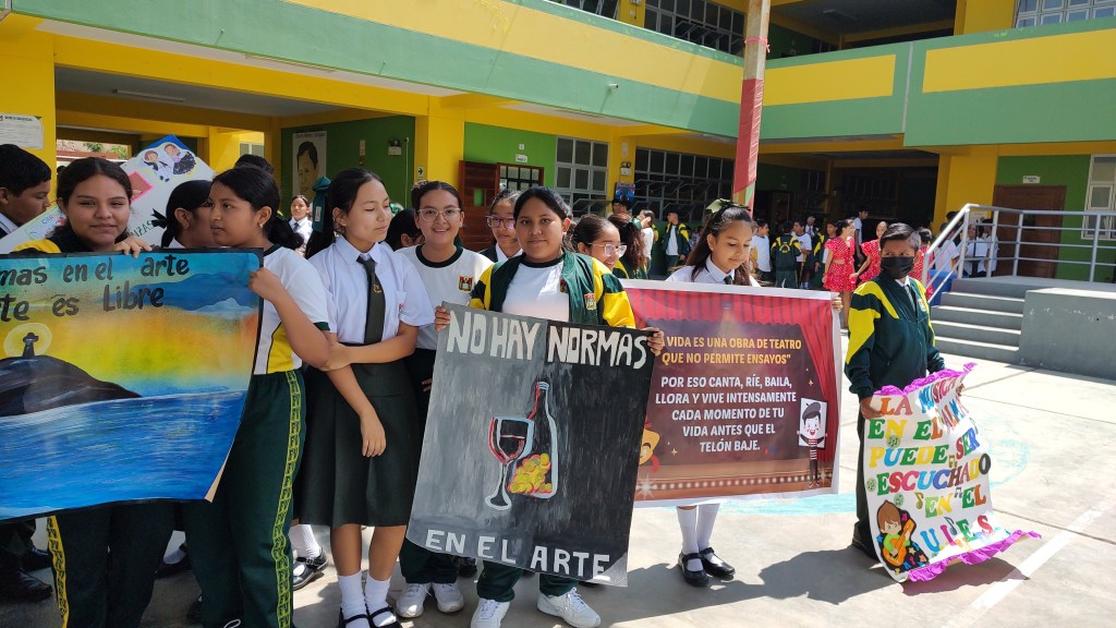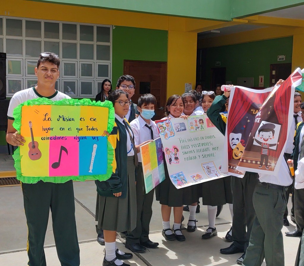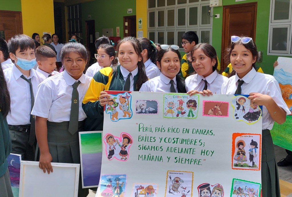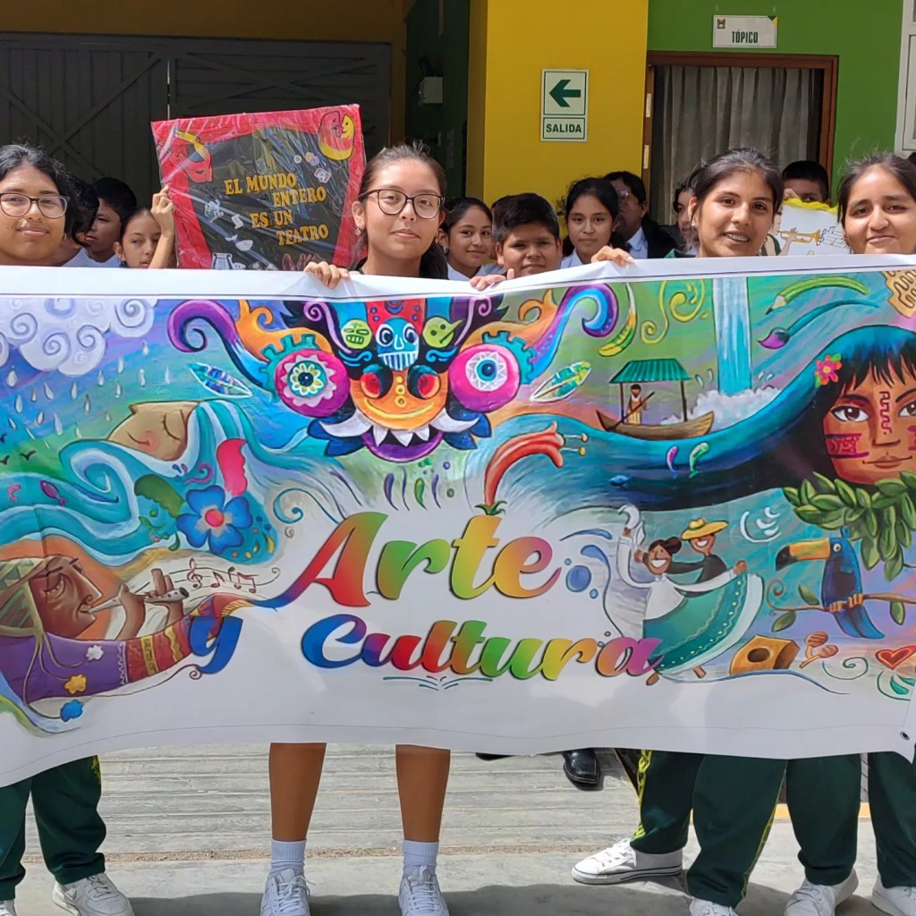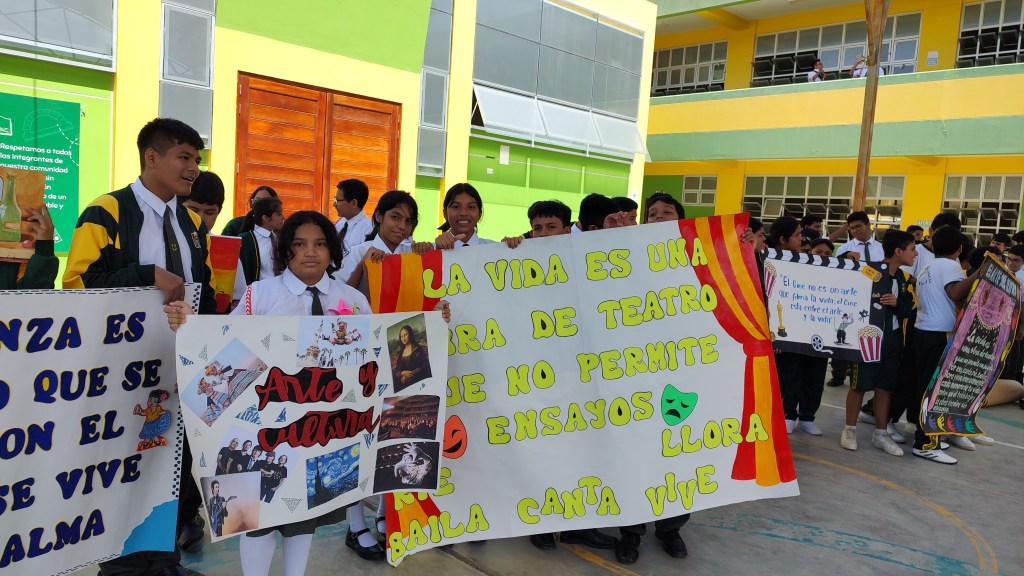 Por segundo día consecutivo, nuestros estudiantes mostraron su talento y entusiasmo en la presentación por la Semana de la Educación Artística, con una bonita Marinera y un hermoso Festejo. Felicitaciones estudiantes y gracias por participar activamente de estas actividades. Arte y Cultura: Profesor Elios Cherres y Carlos Mauricio.