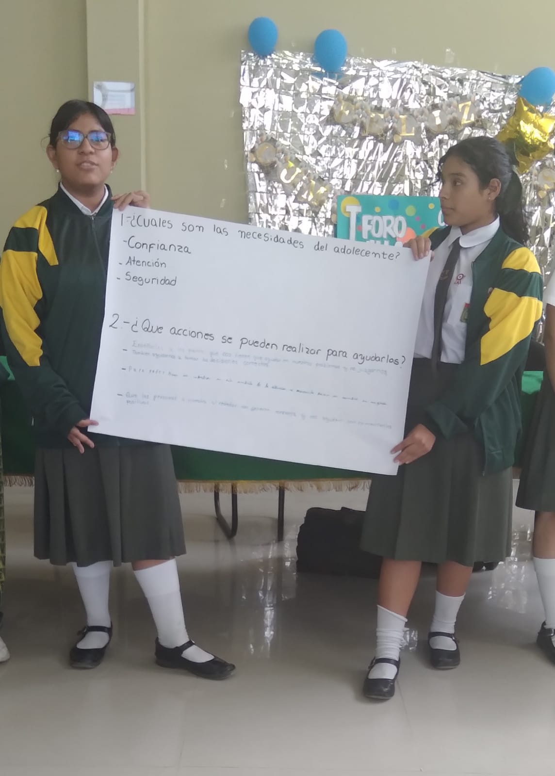 Queremos expresar nuestro más sincero agradecimiento por la distinguida presencia de la Licenciada Elena Quiroga, proveniente de la Oficina de DEMUNA, cuyo reconocimiento a los jóvenes fue un verdadero honor. Su elogio a la excelente organización y preparación de los participantes es un testimonio del esfuerzo y dedicación demostrados por ellos.