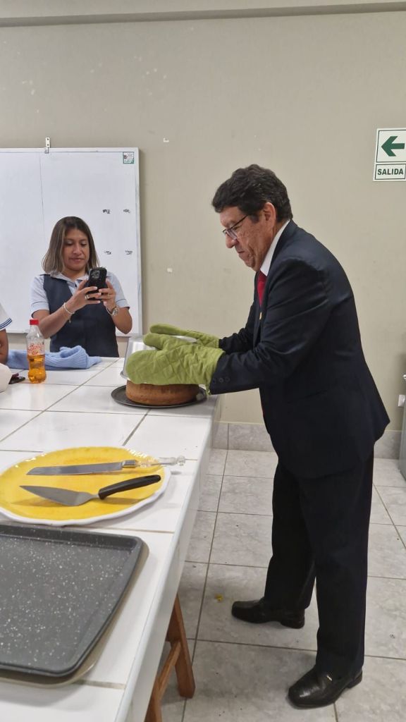 Durante el desarrollo de la prueba en el III Concurso Provincial de Matemática «In Memorian Federico Villarreal», los profesores delegados fueron invitados a participar de una clase de repostería en el laboratorio de Física, impartida por el profesor de Educación para el Trabajo de nuestra institución educativa, Marco Mogollón.