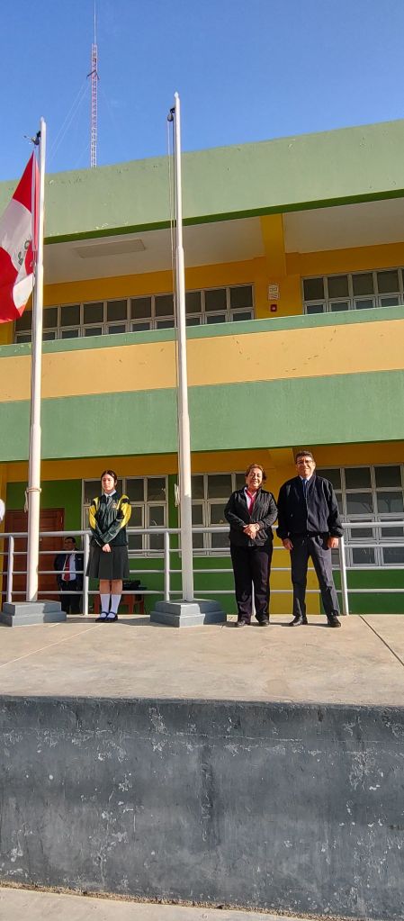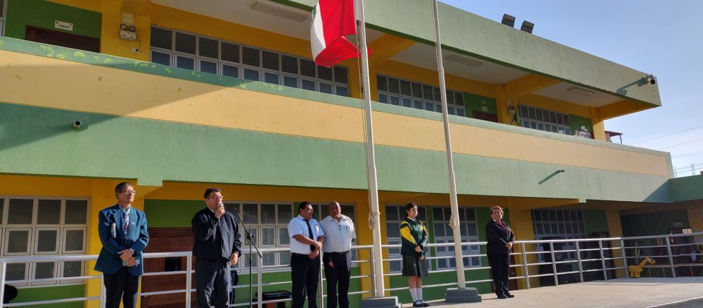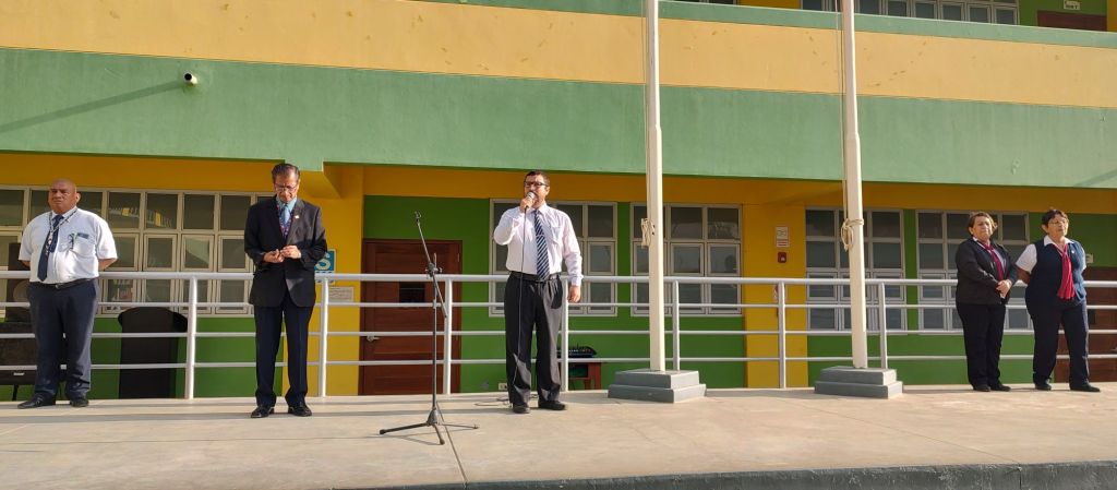 Los profesores José Barrientos y Marco Mogollon fueron invitados al izamiento de la Bandera Nacional, por estar de onomástico los días 18 y 19 de octubre respectivamente.